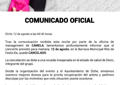 El Parking de la UMH abrirá sus puertas para recibir a los miles de fans de Camela que están deseando celebrar con Dioni y Ángeles sus más de 30 Años de carrera musical.